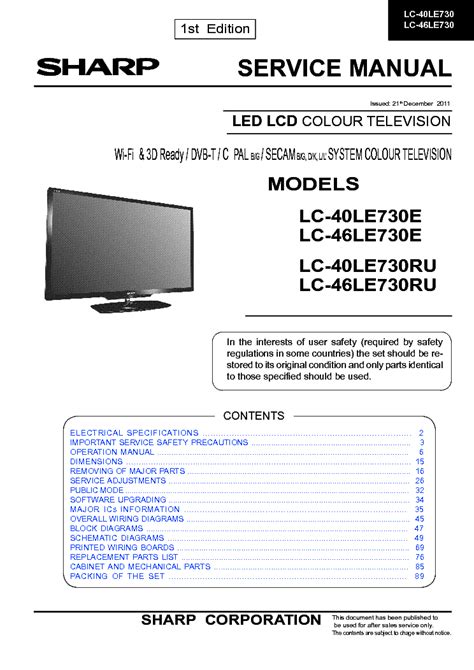 Presently you are looking regarding an Sharp Lc 46le730ru Led Lcd Tv Service Manual example that will we provide here inside some form of document formats like as PDF, Doc, Strength Point, and also images that will will make it easier for you to create an Sharp Lc 46le730ru Led Lcd Tv Service Manual yourself. For a more clear look, you can open several examples below. All the good examples about Sharp Lc 46le730ru Led Lcd Tv Service Manual with this web site, we get from several sources so you may create a better record of your own.